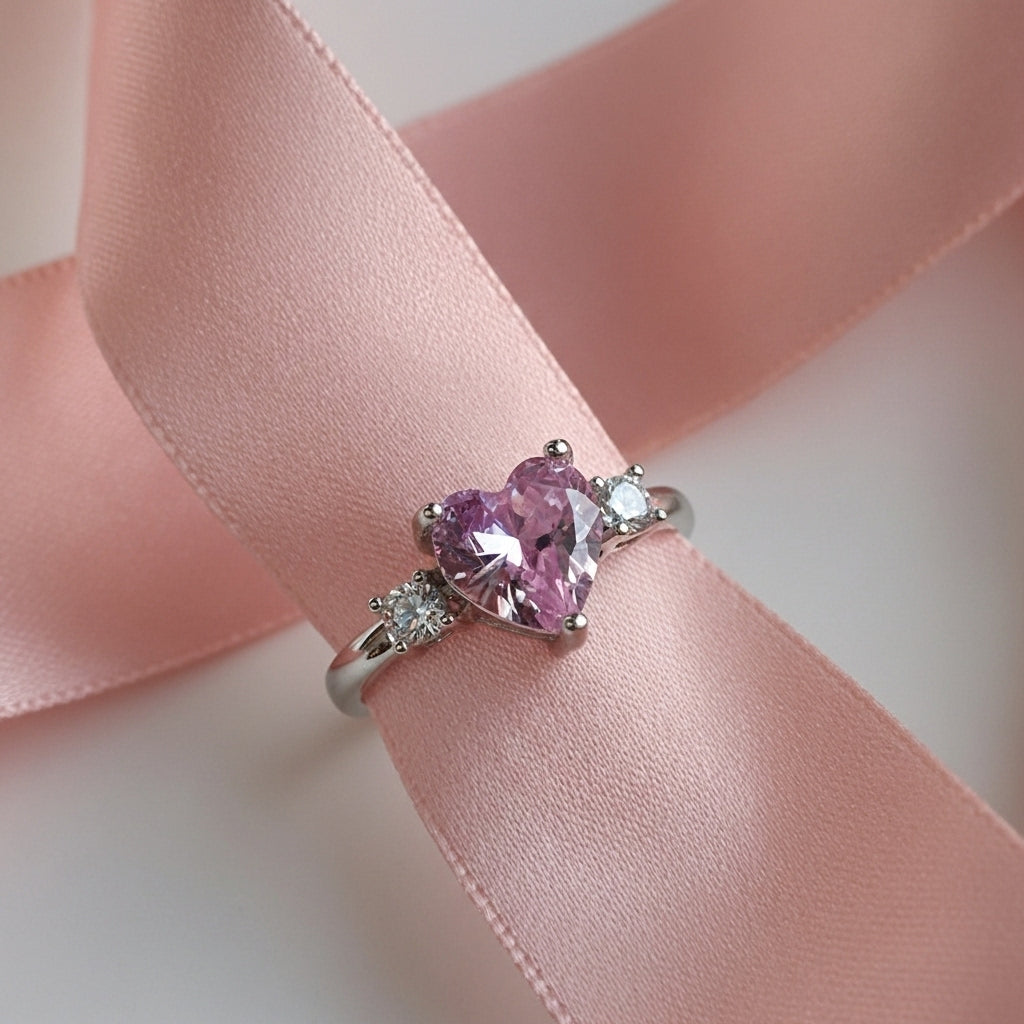 Pink Heart Solitaire Ring